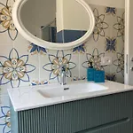 الحمام مزودة بـشطافة بيديه والمرحاض المنفصل والدوش.